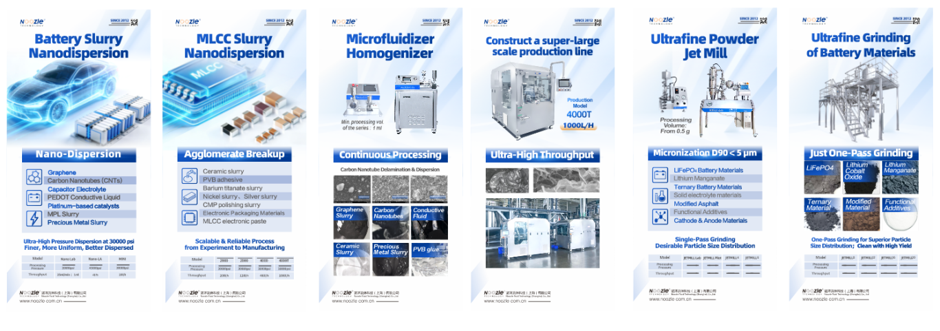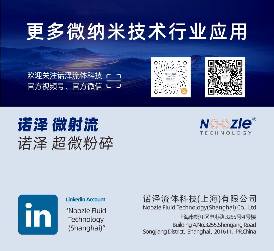 在新能源与新材料领域,诺泽旗下的微射流均质机与超微粉气流粉碎机系列已深耕多年,凭借稳定的性能与优异的工艺表现,赢得了国内外众多头部企业的高度认可与持续合作。经过大量产业化项目的验证,诺泽在电池材料微纳米制备方向已形成了成熟完备的解决方案,覆盖从正负极材料粉碎、导电剂分散到固态电解质处理等多个关键环节,积累了丰富的应用案例,从实验到生产,很好满足不同研发与生产阶段的客户需求。